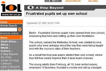 독일 청소년들 9명의 결의로 시작한 이 학교의 이름은 메토도스(methodos). 수업 공간 확보와 이사회 조직 등 준비과정부터 학생에 의해 이루어진 만큼 모든 운영권은 학생이 가지고 있다.