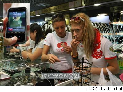 곳곳에서 시끌벅적하게 흥정이 벌어지고 있다. 올림픽이 종반부로 접어든 이날 슈슈이제는 발디딜 틈 없어 북적거렸다. 미국. 캐나다. 호주. 오스트레일리아. 리투아니아. 가나 등 국기가 새겨진 선수단복을 입은 선수들이 몰려들어 ‘짝퉁시장의 뜨거운 올림픽 열기’가 후끈 느껴졌다.