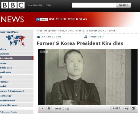 해외언론 “민주화의 상징, 김 前대통령 서거”