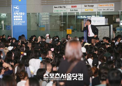 소속사 관계자들과 공항에 도착한 재범은 최대한 노출을 피하려고 했다. 출국 1시간 전에 비밀리에 수속을 밟고 게이트로 들어갔다. 뒤늦게 재범을 발견한 팬들은 한꺼번에 몰려가 “가지마”를 연호했다.
