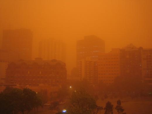 이미 해가 떠있어야 할 아침 7시. 하늘은 붉은 오렌지 빛으로 물들었고, 5m 밖을 볼 수 없을 정도의 짙은 황사가 도시를 삼켜 버렸다.