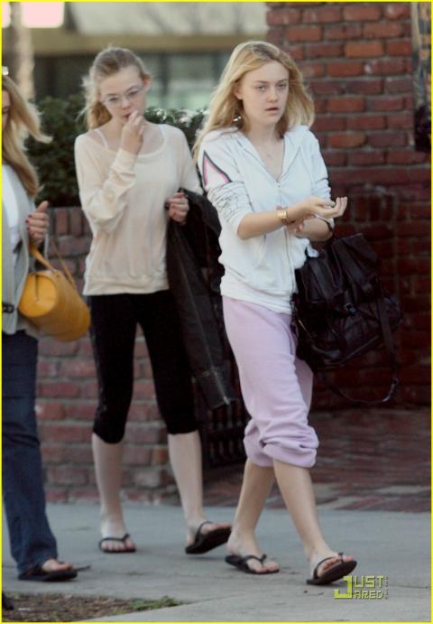 안경을 낀 수수한 차림의 엘르는 영화 ‘벤자민 버튼의 시간은 거꾸로 간다’에 출연했을 때보다 훨씬 더 성숙한 느낌이었다. 다코타와 비슷할 정도로 키가 커 또래 보다 성숙한 모습이었다.