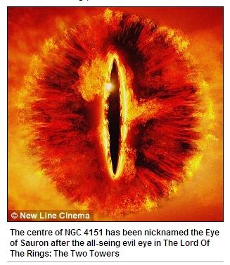 이 블랙홀은 NGC 4151이라 불리는 나선형 은하에 있으며, 과학자들은 이 은하에 있는 블랙홀의 중심이 영화 ‘반지의 제왕’에 등장하는 ‘사우론의 눈’과 매우 흡사한 형태라고 설명했다.