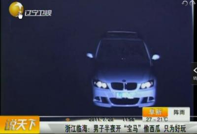 중국 랴오닝성 위성TV 보도에 따르면 28세 린(林)씨는 최근 밤 12시 경 본인 소유의 BMW를 타고 저장성의 한 농가 옆을 지나다가 수박을 훔쳐 달아났다.