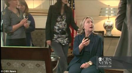 리비아 전 국가원수 카다피의 사망 소식에 전 세계의 관심이 집중된 가운데, 블랙베리를 통해 소식을 접한 클린턴 미 국무장관의 표정이 포착됐다.