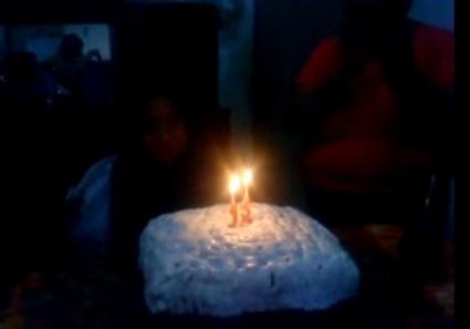 동영상을 보면 생일을 맞은 소녀가 케익을 앞에 놓고 앉아 있는 가운데 가족들이 손벽을 치며 생일축하노래를 불러 준다.