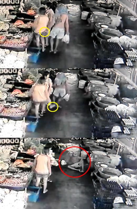 이 영상은 타이의 한 라이브리크 사용자가 CCTV 화면을 직접 카메라로 촬영해 올린 것으로 원본은 지난달 23일 촬영된 것임을 알 수 있다.