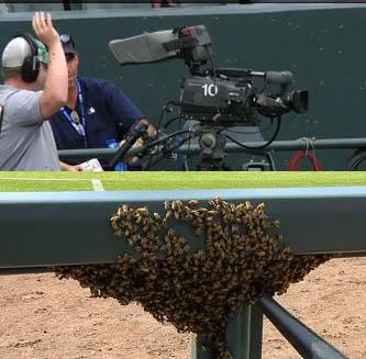 메이저리그 경기중 야구장에 수천마리의 벌떼들이 등장해 경기가 중지되는 소동이 일어났다.