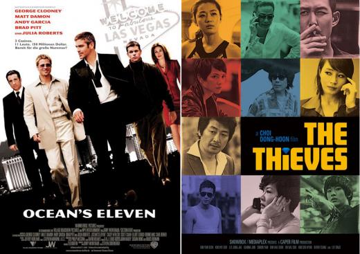 ‘도둑들’의 콘셉트는 2001년 개봉한 스티븐 소더버그 감독의 ‘오션스 일레븐’과 흡사하다. 각 국 대표 배우들이 다국적 도둑들로 분해 도박의 도시에서 고가의 물건을 훔친다는 스토리만 놓고 보면 전혀 구분하기 어려울 정도. ‘도둑들’을 놓고 ‘오션스 일레븐 짝퉁’이라고 예측하는 것도 무리가 아니란 소리다.