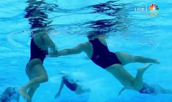 이날 NBC는 경기중 양 국가 선수가 수중에서 치열하게 몸싸움을 벌이는 장면을 내보냈다. 이 과정에서 한 선수가 다른 선수의 수영복을 잡아당겼고 이 와중에 한 여성 선수의 가슴이 그대로 노출됐다.