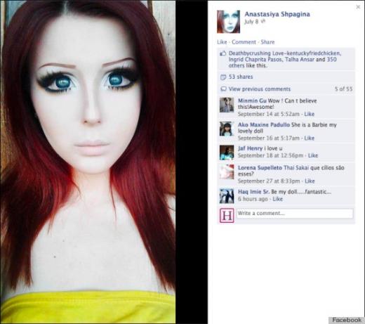 미국 허핑톤포스트 등 해외 언론의 보도에 따르면, 우크라이나의 아나스타샤(19)는 보라색·빨강색 등 형형색색의 헤어컬러 뿐 아니라 만화 속 여주인공과 매우 흡사한 큰 눈, 흰 피부, 잘록한 허리라인 등으로 보는 이들을 놀라게 한다.