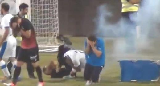 축구 경기중 부상선수에 ‘폭발물’ 투척 충격