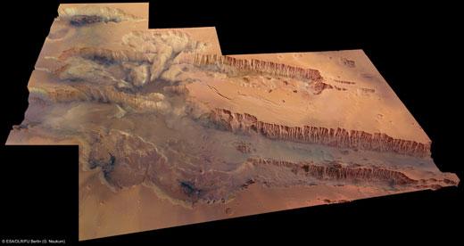 ESA 관계자는 “‘마리네리스’는 타르시스 융기부(Tharsis bulge) 인근에 위치한 어마어마한 크기의 협곡”이라면서 “과거 이곳에서 활발히 용암(마그마)이 흘렀다는 것을 보여주는 증거”라고 설명했다.