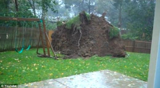 공개된 영상에서는 아직 세찬 비가 내리지 않는 것처럼 보이지만 상당한 세기의 바람이 불고 있으며, 잠시 뒤 정원에 세워져 있던 거대한 나무 한 그루가 뿌리째 들리더니 앞집 정원 쪽으로 쓰러지고 말았다.
