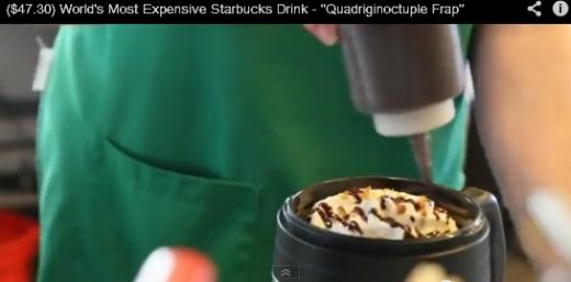 일명 ‘콰드리지녹터블 프라푸치노’(Quadriginoctuple Frap)는 모카 프라푸치노에 에스프레소 48잔, 바닐라 시럽과 바닐라빈, 바나나 2개와 딸기 토핑, 다크 초콜릿, 카라멜과 초콜릿 시럽, 단백질 가루, 생크림 등을 더한 것이다.