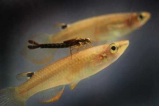 사진을 보면 조그만 유충이 자신보다 몸집이 큰 물고기 위에 여유롭게 올라탄 모습이다.