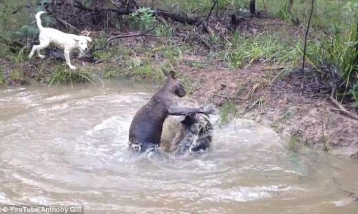 더욱 놀라운 것은 이 동영상 안의 캥거루의 모습이 마치 복서의 모습을 방불케 했다는 것이다. 화가 난 캥거루는 자신을 향해 짖어대는 개를 두 앞발로 흙탕물에 집어넣어 익사시키려 하지만 실패로 돌아가자 개의 얼굴을 가격하기 시작했다.