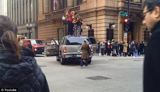 미국 지역방송 NBC 시카고에 따르면 지난 14일 오후 1시 15분쯤 시카고 시내에 있는 한 교차로에 3명의 성인이 SUV 차량을 세운 뒤 4명의 아이들을 데리고 올라가 춤을 추는 황당한 일을 벌였다.