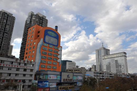 윈난성 쿤밍시에 등장한 이 건물은 건물 외벽 한 쪽 면만 페인팅 등의 ‘착시’현상을 준 것이 아니라, 건물 4개 면 전체를 거대한 휴대폰으로 형상화 했다.