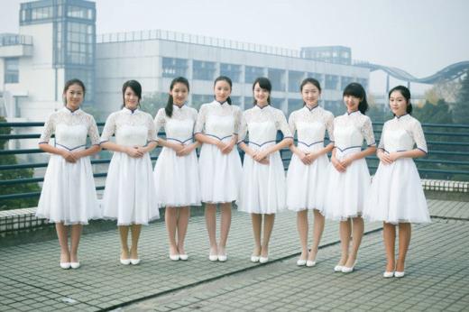 저장성 예의대 여대생 10명은 최근 흰색 원피스를 입고 가지런히 한 줄로 서서 기념사진을 촬영했는데, 이들 대부분이 연예인을 연상케 하는 빼어난 외모를 지녀 네티즌들의 눈길을 사로잡고 있다.