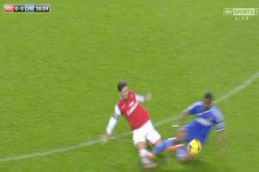 티오 월콧이 페널티 박스 내에서 드리블을 하는 과정에서 첼시의 윌리안이 티오 월콧의 발목을 건드려 티오 월콧이 넘어진 장면에 대한 발언이다. 해당장면은 후에 현지 방송에서도 집중적으로 다뤘는데, 윌리안은 공을 건드리지 않고 월콧의 발목만 건드린 것으로 확인됐다. 페널티킥이 주어져도 무방한 장면이었다.