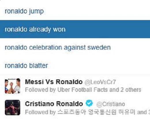 세계인이 사용하고, 특히 스포츠 스타들이 팬들과 소통을 위해 자주 사용하는 트위터에 현재 호날두의 이름을 검색해보면, 자동검색어로 나오는 것 중 하나가 “Ronaldo already won”이다. 말 그대로, ‘호날두가 이미 상을 받았다’는 것이다.