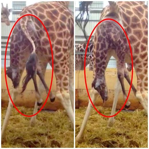 총 길이 55초 정도의 해당 영상을 보면 초반에 이미 새끼 기린 몸 절반이 어미 기린 몸 밖으로 나와 있다. 이후 어미 기린이 약간의 움직임을 보이면서 새끼 기린의 몸도 조금씩 밖으로 빠져나온다. 40초 무렵 새끼 기린의 몸이 다소 격하게 움직이고 48초 때에 어미 기린 몸 밖으로 모두 빠져나오면서 영상은 끝을 맺는다.
