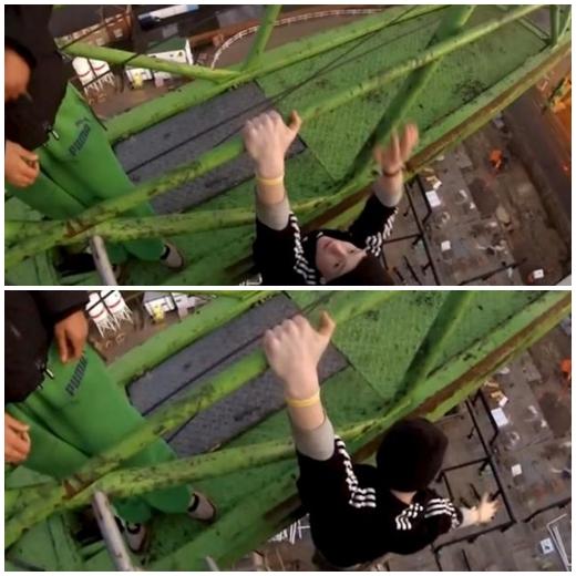 2분이 약간 넘는 해당 영상은 후드 티와 마스크, 비니 모자를 착용한 십대 소년 세 명이 공사장 크레인에 오르는 것으로 시작된다. 꼭대기에 다다른 세 명은 크레인 난간으로 향했고 한 소년이 난간 밖으로 몸을 옮긴다.