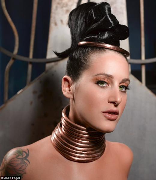 미국 로스앤젤레스에 사는 이 여성의 이름은 시드니 V. 스미스(28). 그녀는 세계에서 가장 목이 길다고 알려진 미얀마의 가얀족 여성들처럼 자신의 목에 구리로 된 목걸이를 채우고 있다.