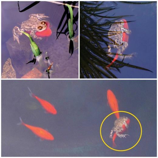 금지된 사랑? 금붕어 껴안은 개구리 포착