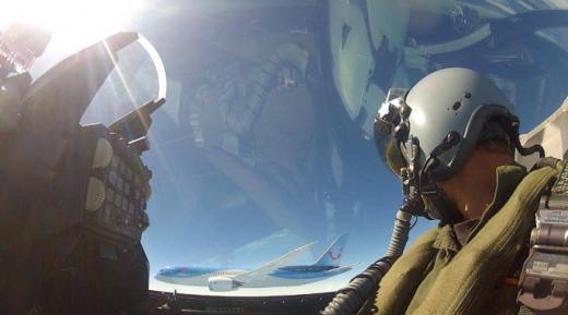최근 네덜란드 공군(RNLAF)이 공중에서 한 여객기 한 대를 호위하는 이색적인 사진을 공개해 관심을 끌고있다. 모자 등에 탈부착이 가능한 ‘고 프로 카메라’로 촬영한 이 사진은 창 밖 여객기를 배경으로 이를 바라보는 F16 전투기 조종사의 모습이 셀카 형태로 담겨있다.