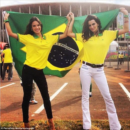 슈퍼모델 알렉산드라 앰브로시오와 페르난타 모타는 노란색의 브라질 공식 유니폼을 입고 직접 경기장을 찾았다.