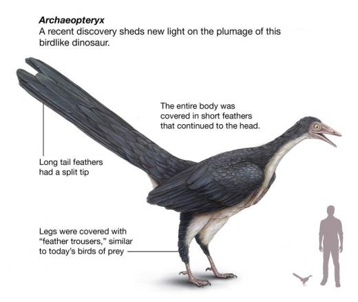 이런 큰 날개가 날 수 없는 시조새의 몸을 덮고 있던 점에서 조류가 지상과 가까운 곳에서 진화했다는 가설에 증거를 더한다.