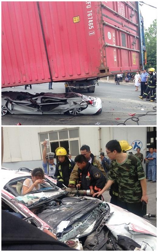 중국 산둥성 동부 칭다오 시내 한 도로에서 발생한 해당 사고는 대형 트럭이 전복되며 실려 있던 컨테이너가 뒤에 오던 차량을 덮치며 일어났다. 당시 현장에 급파된 응급구조요원들은 선적 컨테이너의 막대한 무게에 구겨지듯 파괴된 이 차량을 보며 그 안에 생존자가 있을 것으로 아무도 판단하지 못했다.