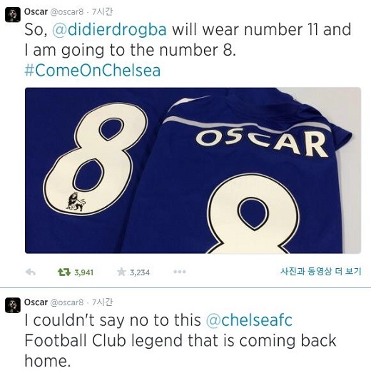 오스카-드록바 등번호 놓고 SNS 상에서 훈담