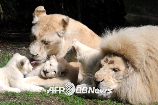 프랑스서 아기 백사자 세쌍둥이 공개…‘가족과 단란한 시간’
