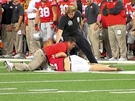 지난 27일(현지시간) 미국 오하이오주 콜럼버스에 위치한 미식축구 경기장에서 한 관중이 경기장에 난입하는 한바탕 소동이 벌어졌다. 무려 10만 명의 관중이 모여 열띤 응원전이 펼쳐진 이날 경기는 오하이오주와 신시내티 대학과의 경기.