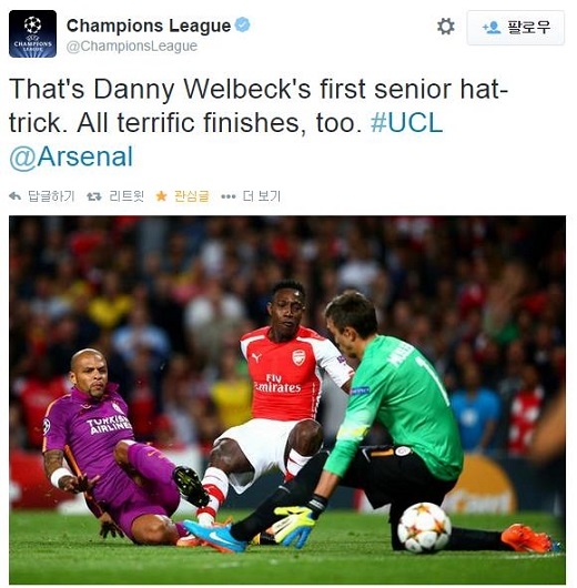 사진= 웰백의 프로통산 첫 헤트트릭을 알리고 나선 챔피언스리그 공식트위터