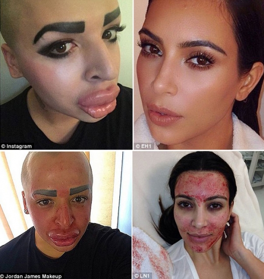 영국 일간지 데일리메일의 17일자 보도에 따르면, 올해 23세인 조단 제임스 피크는 눈썹이 짙고 입술이 도톰한 킴 카다시안의 외모를 닮고 싶어서 무려 2억 2775만원을 들여 수 십 차례 시술을 감행했다.