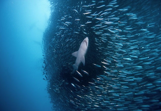 포식자들에게는 환상적이지만 정어리들에게 최악의 순간인 이 사진은 남아프리카 공화국 와일드코스트 바닷속에서 촬영된 것이다. 수심 25m 아래서 무려 7시간에 걸쳐 만찬을 즐긴 주인공들은 상어, 고래, 돌고래, 부비새 등이다.