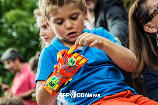 프랑스 남동부 세슈라는 마을에 거주하고 있는 이 소년은 미국의 비영리 재단인 ‘이너블’(e-NABLE)을 통해 인공 손을 받았다.