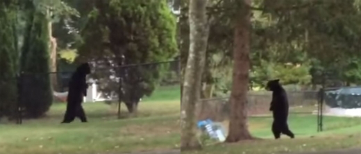 이 영상은 미국 뉴저지 주의 한 시골마을인 오크리지에서 지난달 27일(현지시간) 촬영된 것으로, 마을 도로를 이족보행으로 활보하는 곰의 황당하고도 신기한 모습이 잘 드러나 있다.