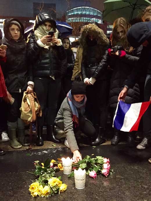 지난 13일(현지시간) 밤 프랑스 파리에서 벌어진 동시다발 테러로 최소 120명이 사망하고, 중상자 80명을 비롯해 200여 명이 부상한 가운데 희생자를 추모하는 행사가 세계 곳곳에서 벌어지고 있다.