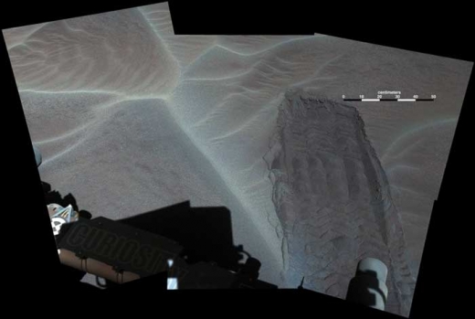 이 사진은 지구시간으로 지난 5일, 화성시간으로 큐리오시티가 화성 탐사를 시작한지 1184솔(SOL·화성의 하루 단위. 1솔은 24시간 37분 23초로 지구보다 조금 더 길다)에 배그놀드(Bagnold Dunes)라 불리는 사구에서 촬영한 것이다.