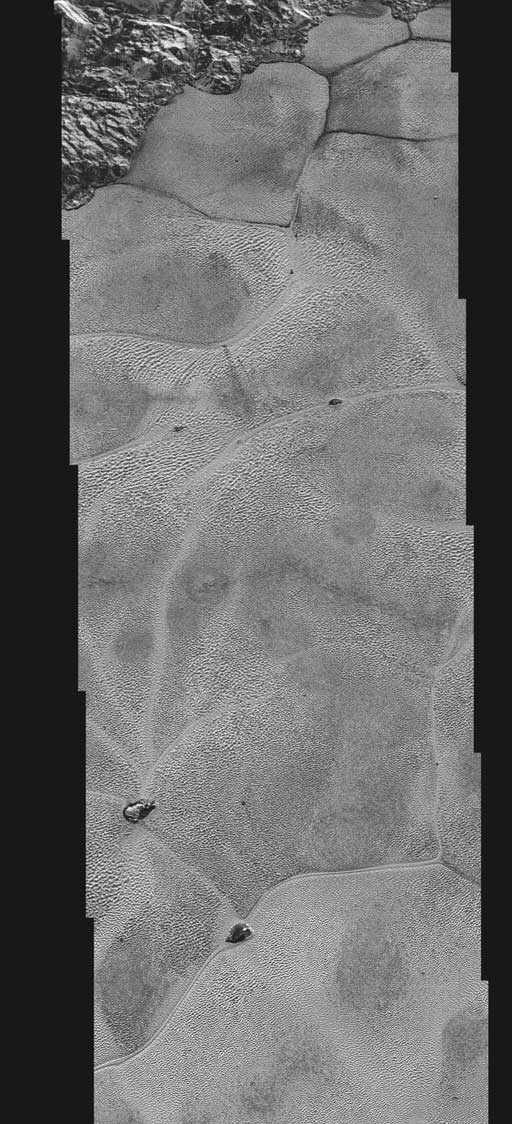 8일(현지시간) 미국항공우주국(NASA)은 뉴호라이즌스호가 촬영한 바이킹 테라 지역(Viking Terra area)과 스푸트니크 평원(Sputnik Planum)의 근접 모습을 홈페이지에 공개했다.
