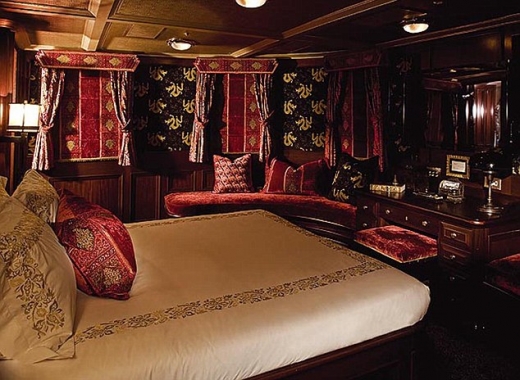 요트 실내 곳곳에는 최고급 카펫이 깔려있고, 중세시대를 연상케 하는 탁자와 커튼 등도 눈에 띈다.