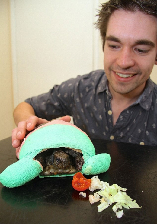 팔에 ‘깁스’한 거북이…안타까운데 귀여워~