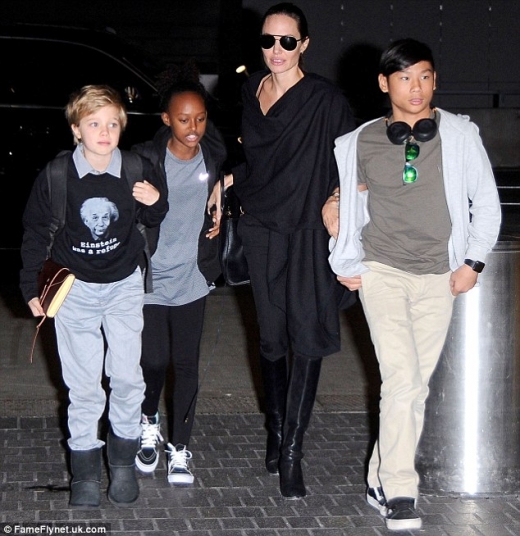 미국 현지시간으로 지난 7일, 샤일로는 졸리 및 졸리의 입양 자녀인 자하라(11), 팍스(12)와 함께 로스앤젤레스공항을 빠져나왔다. 평소 보이시한 스타일을 즐기는 것으로 알려진 샤일로는 이날도 역시 몸에 붙지 않는 바지와 티셔츠, 남방 등을 입고 커다란 가방을 등에 맨 채 공항을 빠져나왔다.