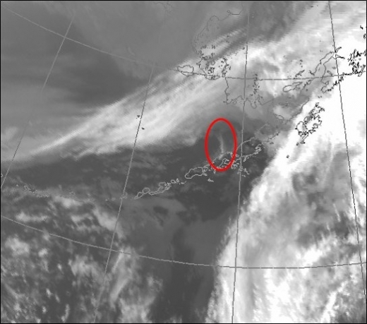 자연의 웅장한 모습에 경외감마저 자아내는 이 사진은 지난 27일 오후 7시 경 알래스카주 남서부 항구인 더치하버에서 앵커리지로 가는 펜에어 여객기 내에서 촬영됐다. 화산이 폭발한 지 불과 4시간 후에 촬영된 이 사진은 승객 콜트 스냅이 촬영해 트위터에 올리면서 전세계에 퍼졌다.