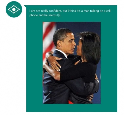 대표적으로 인류 최초의 달 착륙사진에 대해 캡션봇은 '지저분한 땅 위에 서있는 한 남자'라고 표현해 웃음을 준다. 특히 버락 오바마 미국 대통령과 영부인 미셸의 포옹사진은 한 남자가 휴대전화 통화를 하는 것으로 나온다.(I am not really confident, but I think it‘s a man talking on a cell phone and he seems) 한마디로 영부인 미셸이 졸지에 휴대전화가 된 셈이다.